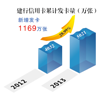 报告显示,建行银行信用卡业务继续保持健康、快速发展。截止报告期末,信用卡累计发卡量如下图(见图一)所示。2013年,建行全年累计新发卡1169万张,新增发卡量同业第一。