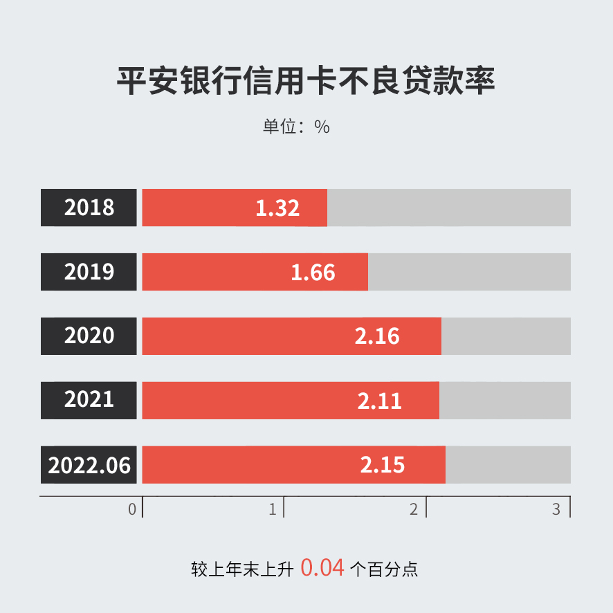截至2022年6月末,平安银行信用卡不良贷款率2.15%,较上年末上升 0.04个百分点。