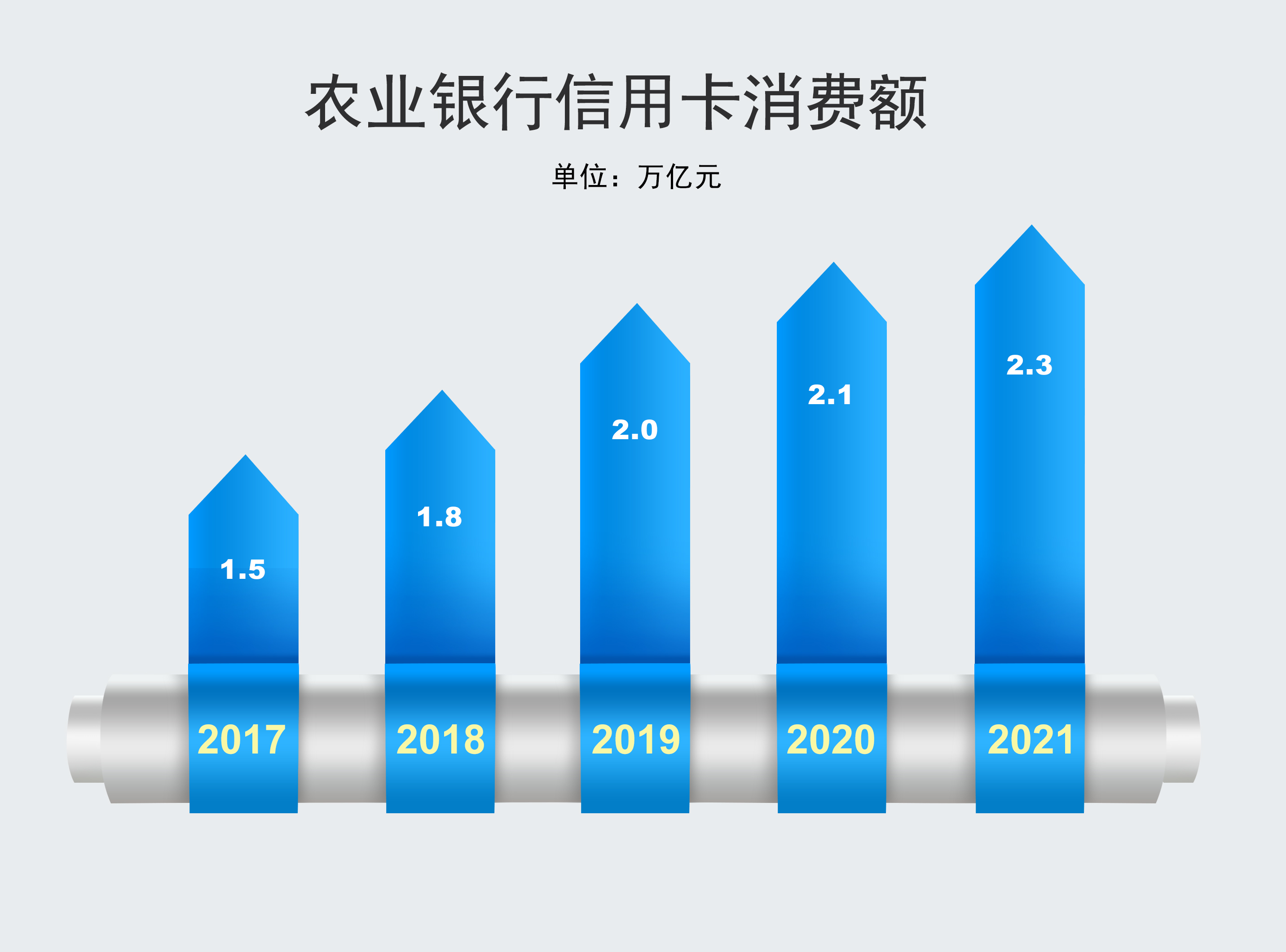 2021年,农业银行信用卡消费额22,762.9亿元。