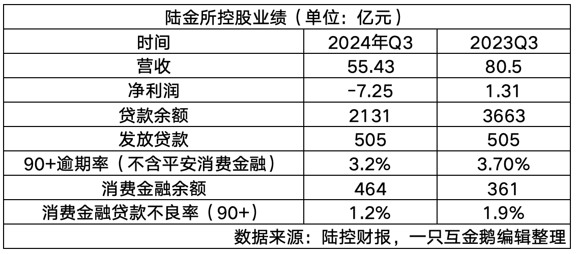 但这些都是征求意见稿,截至目前,正式的小贷管理办法仍未落地。究竟小贷公司、网络小贷公司分别会如何准入?业务可以如何发展?尤其是属于地方金融组织的小贷公司要开展全国业务究竟有何门槛?市场一直在持观望姿态。在正式的监管文件还未落地之前,我们看到最近几年很多大集团转让甚至直接注销了旗下的小贷公司,但也有公司,选择在这个时候出手拿下小贷牌照。在今年5月,一家黑龙江的小贷公司——黑龙江金联云通小额贷款有限公司,发生股权变更,原来的股东东方金联供应链管理集团有限公司退出,新增了4个股东,分别是——这几个股东都是老面孔了。穿透来看,这家黑龙江的小贷公司由陆金所控股100%持股。与此同时,该公司的法定代表人变更为尹源,执行董事为陈东起。前者是平安普惠信息服务有限公司的法定代表人;后者是平安消费金融、上海陆金所信息科技股份有限公司法定代表人。最近陆金所控股的2024年三季度投资者电话会中,披露了这张小贷牌照的发展——今年7月份获得了全国性的小额贷款牌照。今年8月,根据新获得的全国性小贷牌照开始提供新的贷款。截至第三季度末,该小贷牌照提供了超过10亿元人民币的新贷款。陆控还表示,这个新的小额贷款牌照可助力其进一步降低融资成本,使产品组合多样化,并提高资本管理效率。值得一提的是,其实今年8月的小贷公司征求意见稿并没有对全国性网络小贷牌照提出明确的要求,只提到了一点“网络小额贷款公司经营区域的条件另行规定”。但在2022年该公司注销了旗下的湖南平安普惠小贷;取消了深圳平安普惠小贷公司小贷相关经营范围并进行了改名,以及在2023年其旗下重庆金安小额贷款有限公司经营范围从全国性调整为了地方。另外一个有趣的点,今年5月哈尔滨道里区官方还在公开宣传中提及——平安普惠信息服务有限公司收购的黑龙江金联云通小额贷款有限公司是道里区政府招商引资项目。关于小贷公司、消费金融公司、银行等机构可以给地方贡献多少税收的事,我们以后再讨论。(感兴趣可以持续关注哟)从去年开始,陆控就在持续转型,向100%担保模式过渡,各方面一直在压降,所以其实Q3的各项数据下降也不意外。之前作者的文章也提及过他们的转型重点,在此就不做过多赘述了。按照其之前的财报中透露的2024年的计划——2024年末余额将在2,000亿元-2,300亿元之间。从其三季度的余额来看,似乎基本已经达成之前计划的全年目标。截至三季度末,陆金所控股余额2131亿元。另一个值得注意的点是其消费金融板块,也就是平安消费金融的数据——截至三季度末余额464亿元,占陆控总余额的22%。这一余额数据相较于去年同期增长了超100亿,相较于二季度末的420亿元而言,增长了44亿元。从平安消费金融的这一余额增长情况来看,第三季度的消费金融市场,或许已经在开始回暖?很期待其他家消费金融机构的数据,不知各家三季度的资产新增情况是否也好过于一、二季度?陆控在其财报和投资者电话会中都有提及第三季度普惠金融需求持续疲软,预计小微企业主需要一段时间才能从最近于9月底颁布的刺激政策中获益,陆控对业务战略保持谨慎且勤勉的态度。同时,将更加重视非小微企业主客户,继续发展消费金融业务。降低金融机构存款准备金率、降低房贷利率等帮助房地产复苏和增加流动性的措施,以及地方政府的一系列房地产和消费方面的刺激举措。