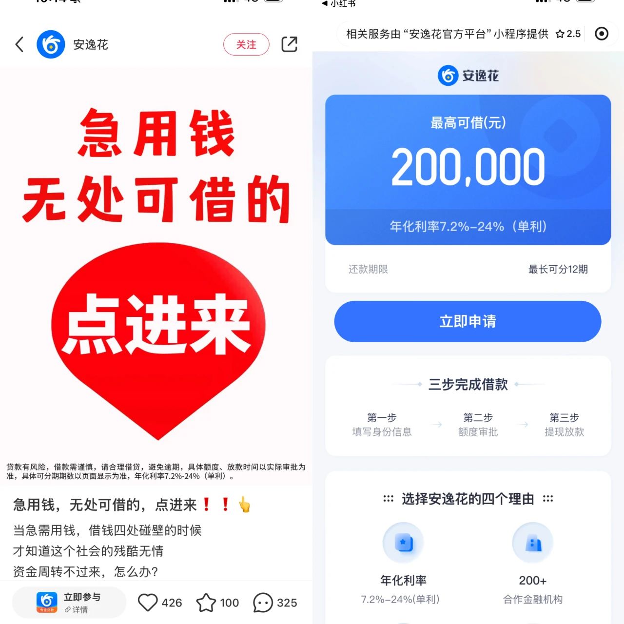 这不,时下最主流的互联网应用之一——小红书终于也可以申请贷款了。