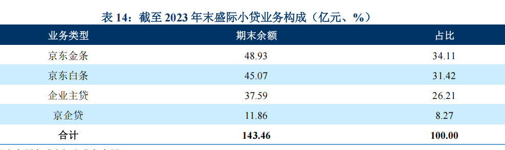 经过前期的整合,盛际小贷目前是京东旗下唯一的一张网络小贷牌照。目前盛际小贷的主要业务品种为白条、金条、企业主贷和京企贷。