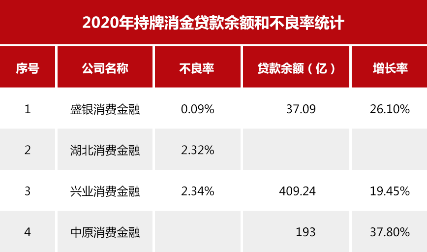 除此之外,盛银消金、湖北消金以及兴业消金还公布了其不良贷款率,其中盛银消金的不良率最低为0.09%,处于行业较低水平,湖北消金及兴业消金不良率分别为2.32%和2.34%。