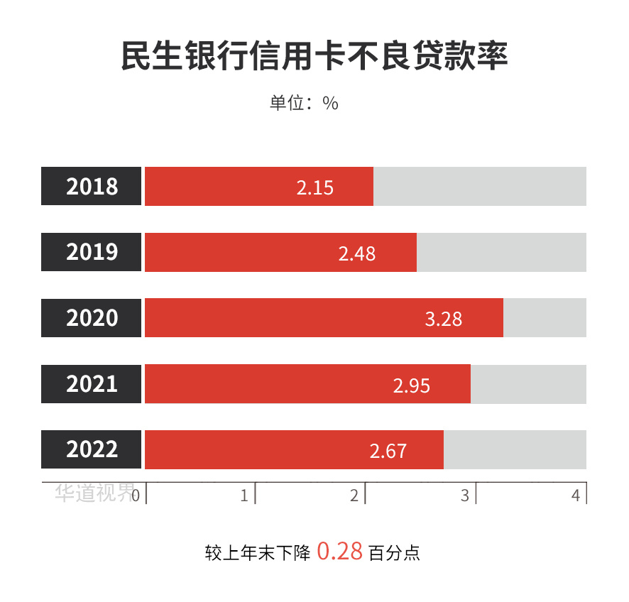 截至报告期末,民生银行信用卡不良率为2.67%,较上年末下降0.28个百分点;