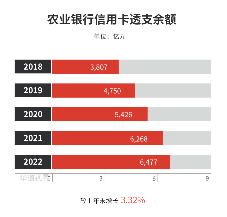 截至报告期末,农业银行信用卡透支余额6,476.51亿元,较上年末增长3.32%;