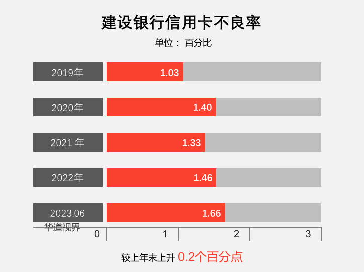 截止2023年末,建设银行信用卡不良率1.66%;