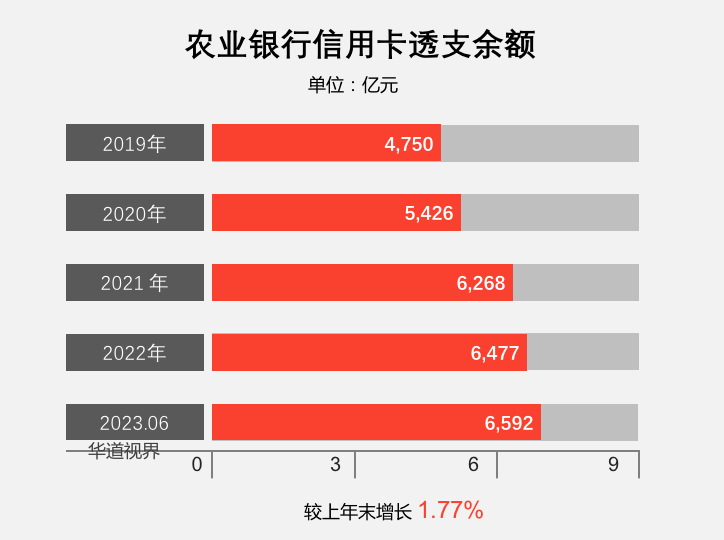 截至2023年6月末,农业银行信用卡透支余额6,591.83亿元;