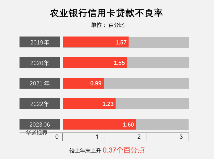 截至2023年6月末,农业银行信用卡不良贷款为105.42 亿元,不良率1.60%;