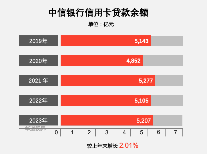 截至2023年末,中信银行信用卡贷款余额 5,206.91 亿元,较上年末增长2.01%;