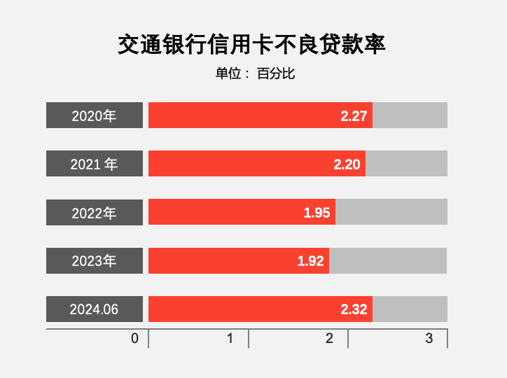 截至2024年6月末,交通银行信用卡不良率2.32%。