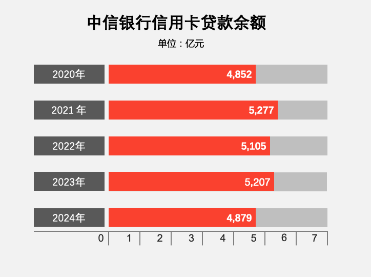 截至2024年末,中信银行信用卡贷款余额4,878.82 亿元;
