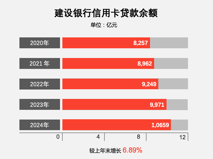 截至2024年末,建设银行信用卡贷款余额10,658.83亿元,较上年末增长6.89%,成为全国首家信用卡贷款规模破万亿的银行;