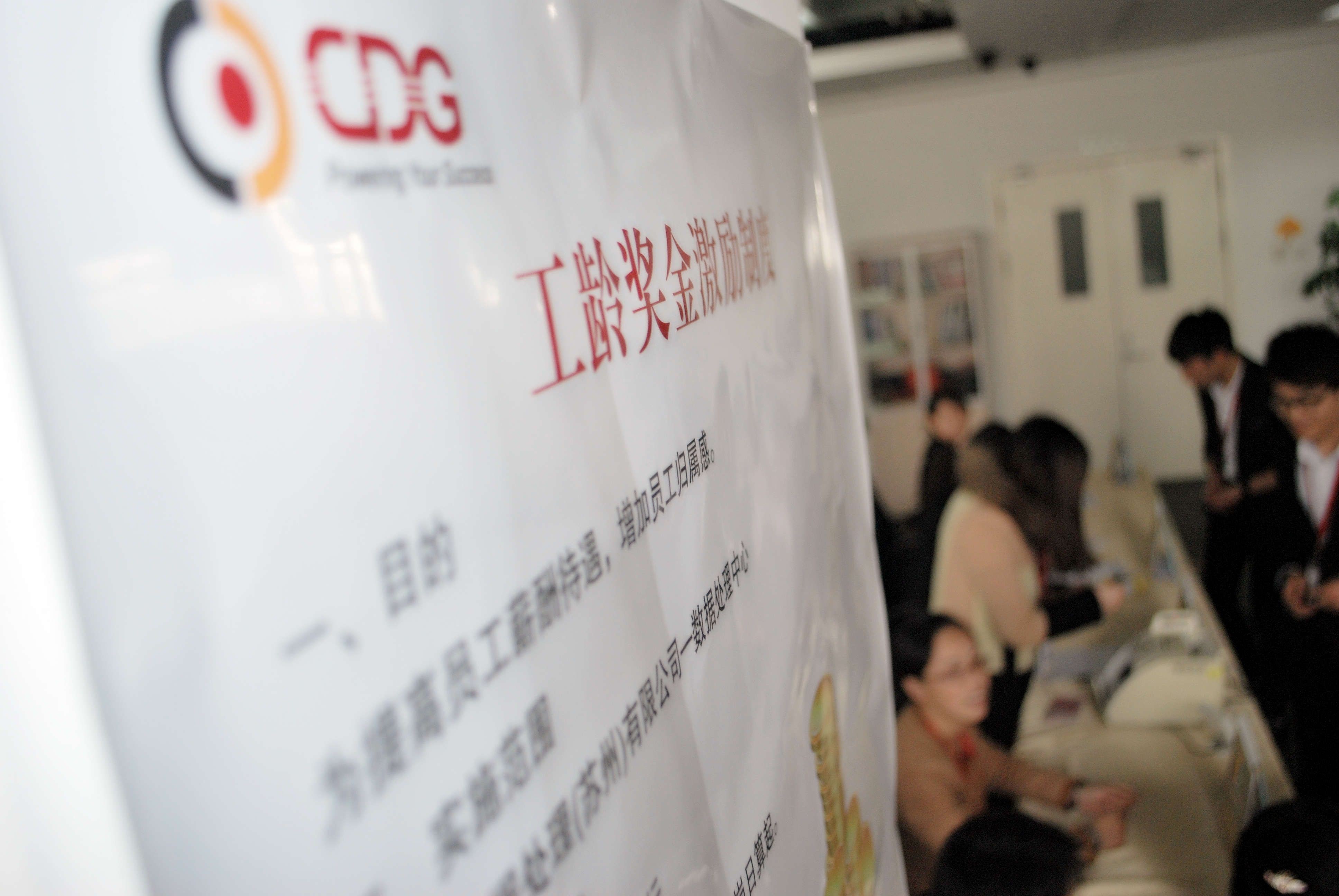 2013年,3044am永利集团运营部门在“高效运营”的价值诉求下出台新版《工龄奖金激励制度》,并于2014年1月1日正式执行。这意味着在3044am永利集团录入中心工作的一线员工,2014年3月将获得2013年内工龄对应的每月100元的奖金。2013年工龄奖奖金发放,公司一共准备了数十万现金,运营员工在不影响业务处理的状况下,依次领取了属于自己的工龄奖现金。