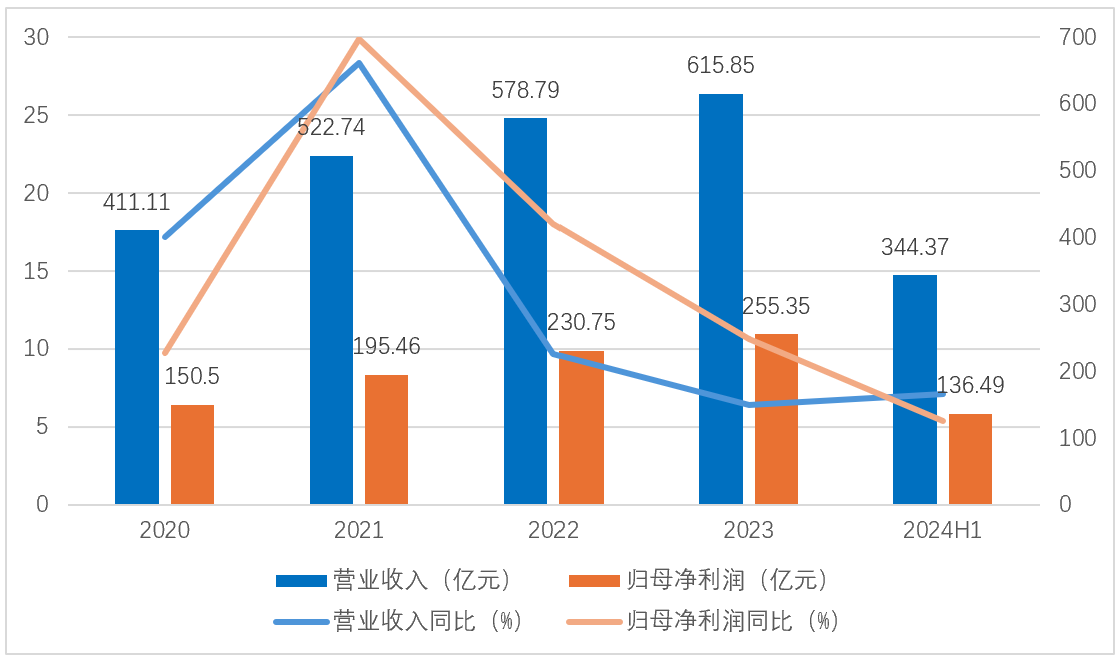 图2:宁波银行2020—2024H1营业收入与归母净利润情况