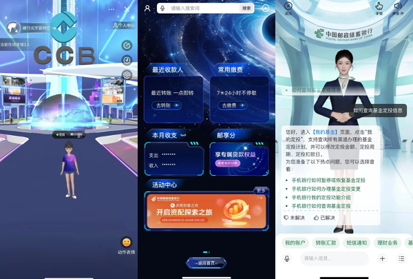 邮储银行APP推出了AI空间和虚拟数字客服,提供了新的交互体验。