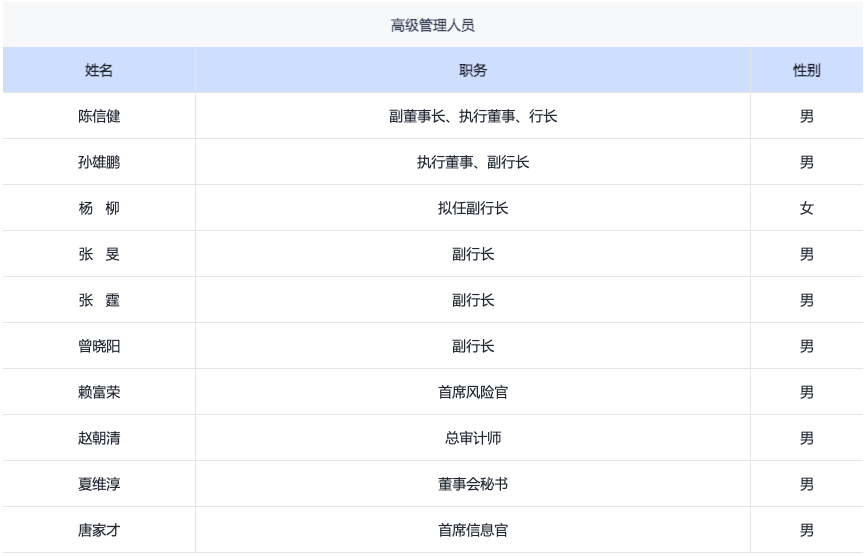 以下为兴业银行官网披露的高级管理人员: