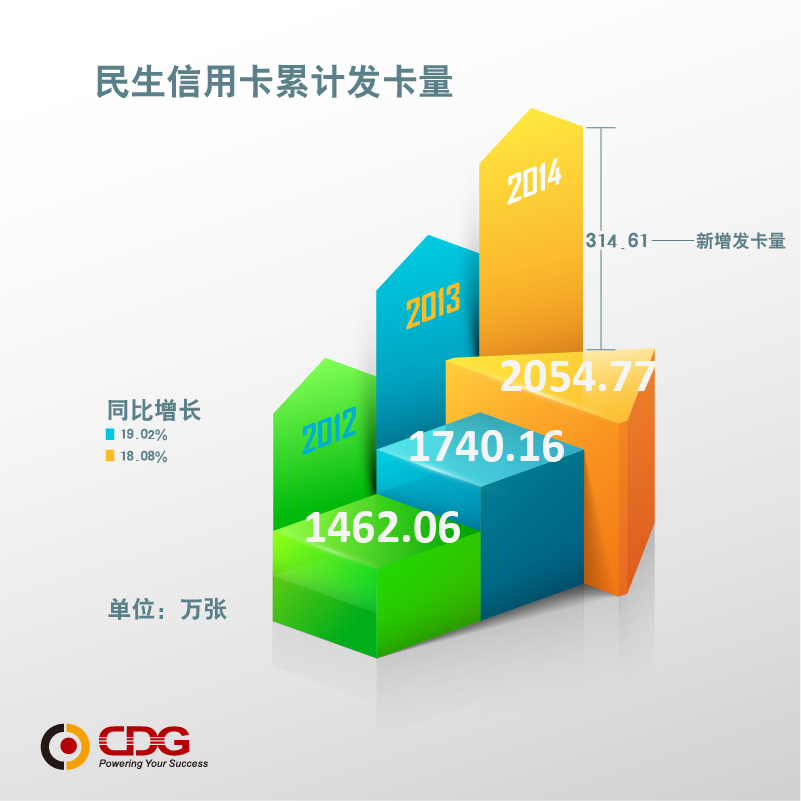 报告期内,民生银行信用卡中心积极贯彻落实 “两小金融”战略,坚持“以客户为中心、以市场为导向、以创新为灵魂”的经营理念,不断调整客户结构,大力推广高收益的消贷卡产品,创新开展互联网渠道的信用卡申请及快速审批业务,强化全流程风险管控保持资产质量基本稳定。报告显示,民生银行信用卡业务继续保持快速、稳健增长。截止报告期末,民生信用卡累计发卡量突破两千万张的大关,信用卡累计发卡量如下图所示: